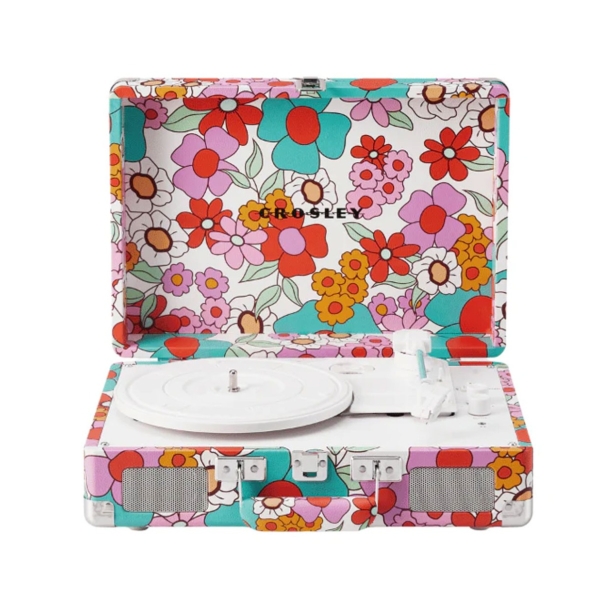 Listen to your vinyl records on the Crosley Cruiser portable turntable, with three speeds – 33, 45, and 78 rpm.